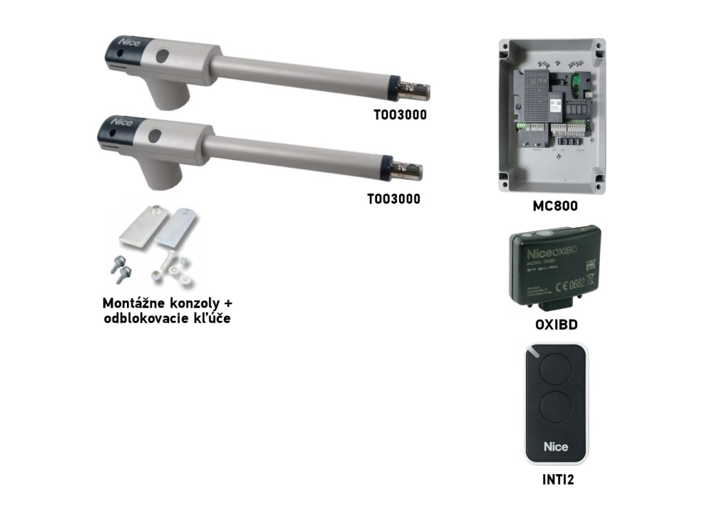 Sada pohonu NICE TOO TOO3000 pro dvoukřídlou bránu - jedno křídlo 3m/300kg
