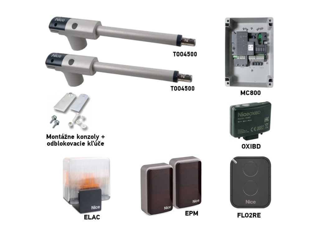 Sada pohonu NICE TOO TOO4500 pro dvoukřídlou bránu - jedno křídlo 4,5m/250kg s příslušenstvím
