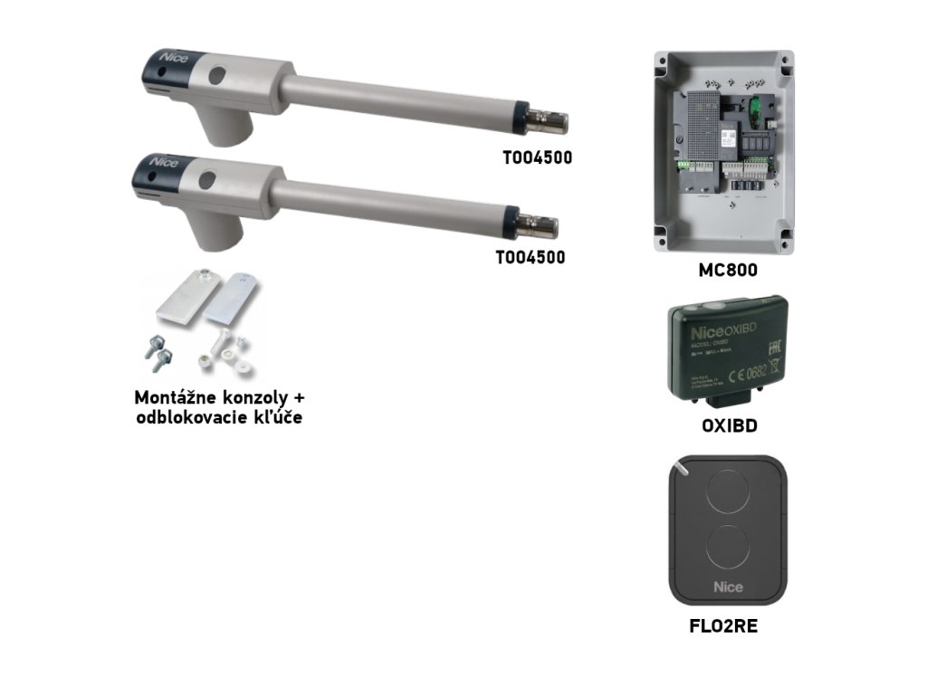 Sada pohonu NICE TOO TOO4500 pro dvoukřídlou bránu - jedno křídlo 4,5m/250kg