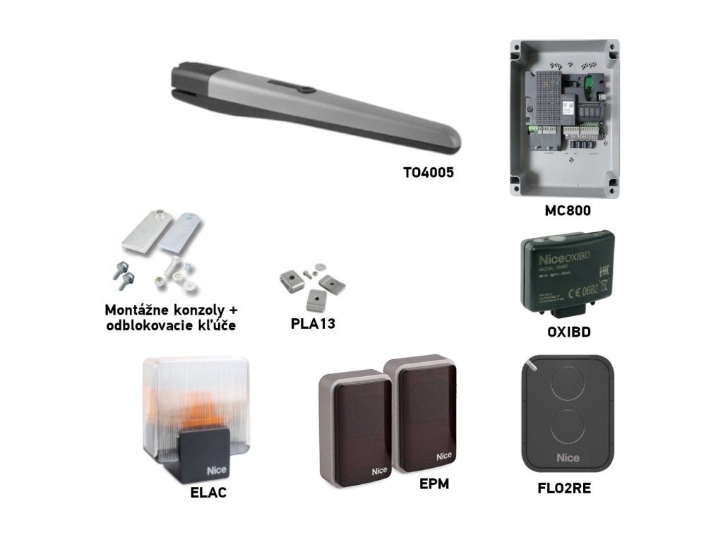 Sada pohonu NICE Toona 4005 pro jednokřídlou bránu - jedno křídlo 3m/500kg s příslušenstvím
