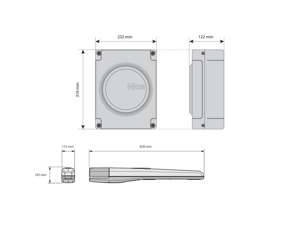 Elektromechanický pohon NICE Toona TO4024 s nosností křídla brány až 500 kg a délkou křídla až 3 m. |