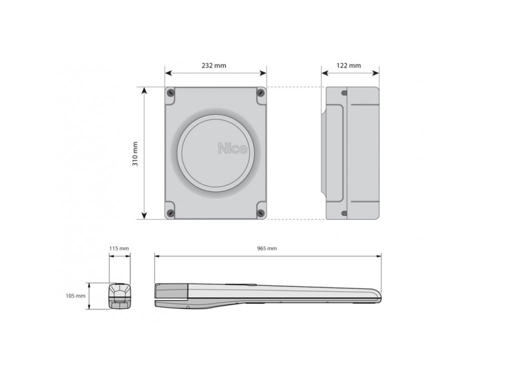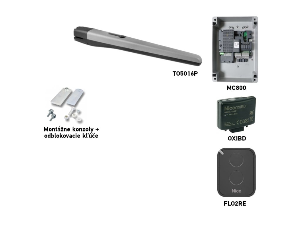 Sada pohonu NICE Toona 5016P pro jednokřídlou bránu s větším zatížením jednoho křídla 5m/800kg
