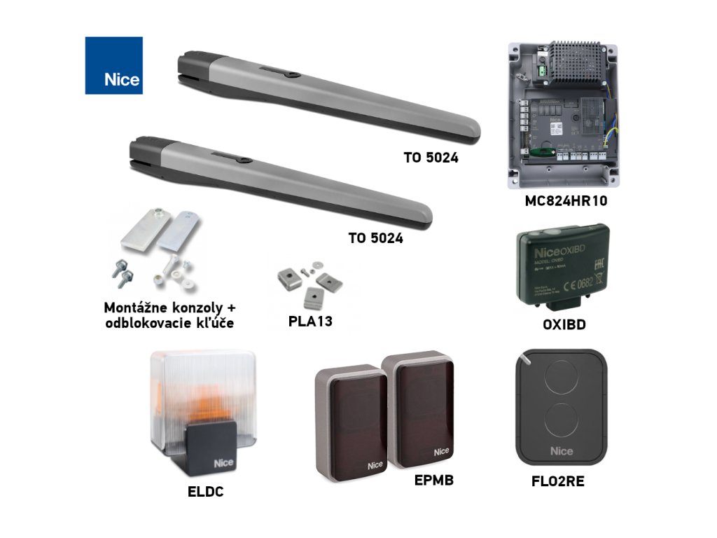 Sada pohonu NICE Toona 5024 pro dvoukřídlou bránu - jedno křídlo 5m/500kg s příslušenstvím