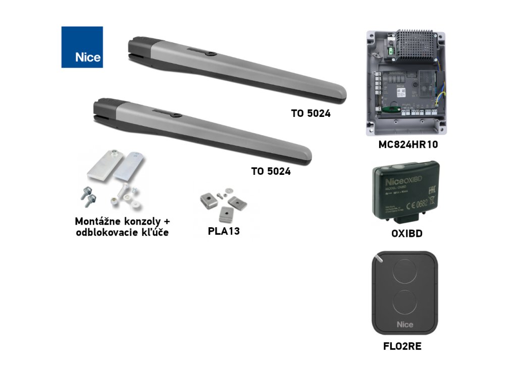 Řídicí centrála | Jediný ovládací panel kompatibilní s pohonem NICE Toona TO5024. Podporuje technologii BlueBUS, 24 V a obsahuje vestavěnou řídicí jednotku MCA1. | - MoonClever(MC824HR10) | Ano, MC824HR10. |