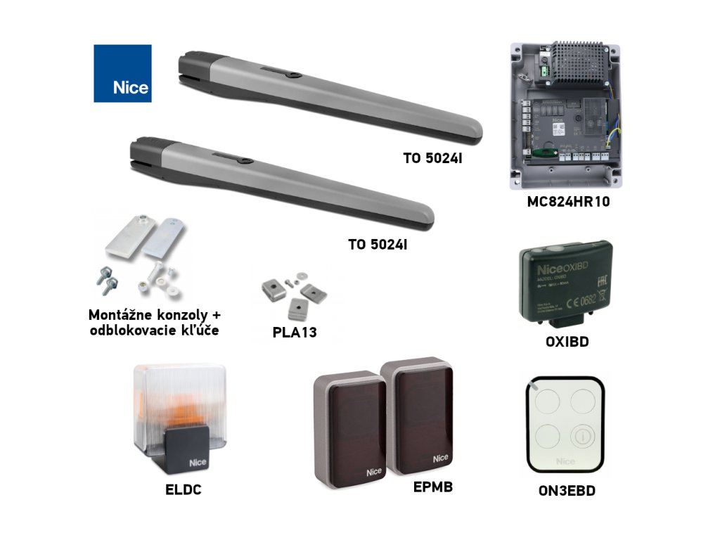 Sada pohonu NICE Toona 5024I pro dvoukřídlou bránu - jedno křídlo do 5 m/600 kg s příslušenstvím