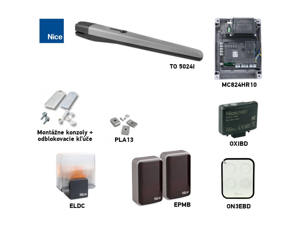 Sada pohonu NICE Toona 5024I pro jednokřídlou bránu do 5m/600kg s příslušenstvím