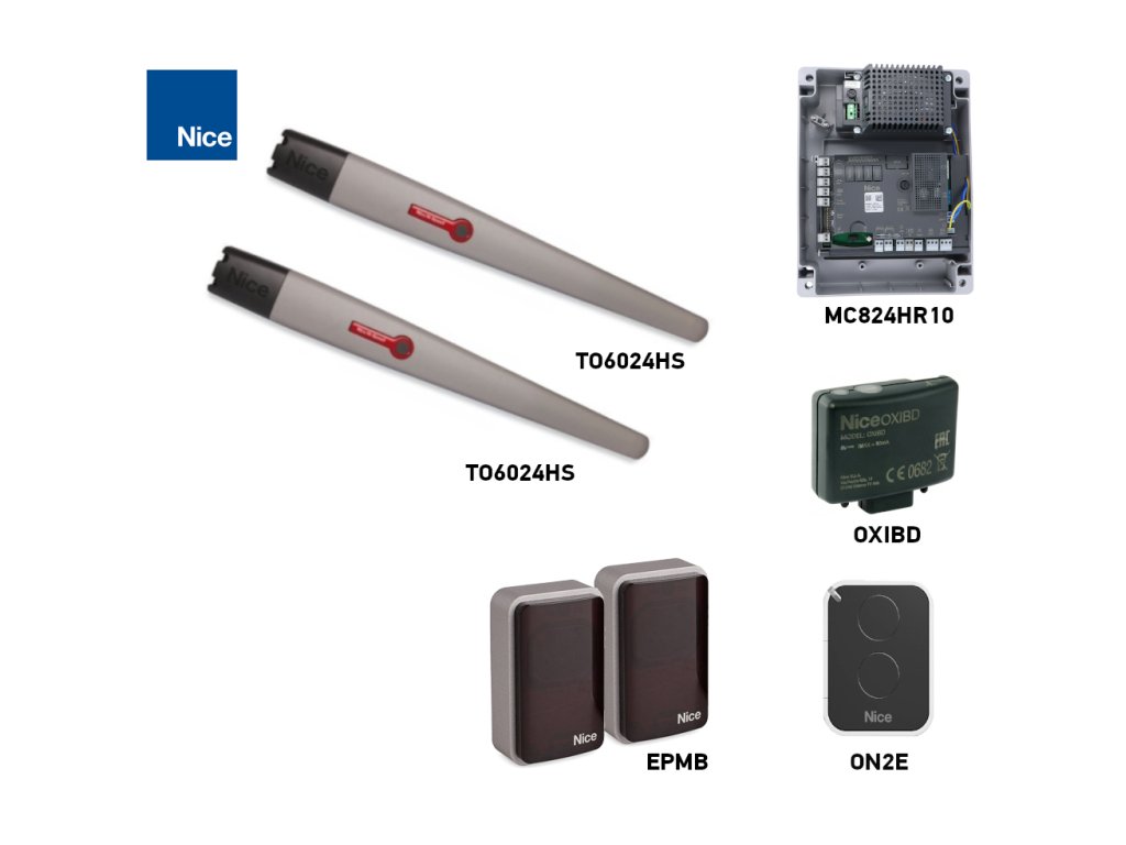 Sada pohonu NICE Toona TO6024HS je určena pro automatizaci křídlových bran do délky křídla 6 m a hmotnosti až 1450 kg. Pohon je založen na 24V technologii.