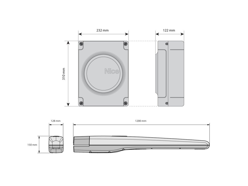 Elektromechanický pohon NICE Toona TO7024 s nosností křídla brány až 1700 kg a délkou křídla až 7 m.