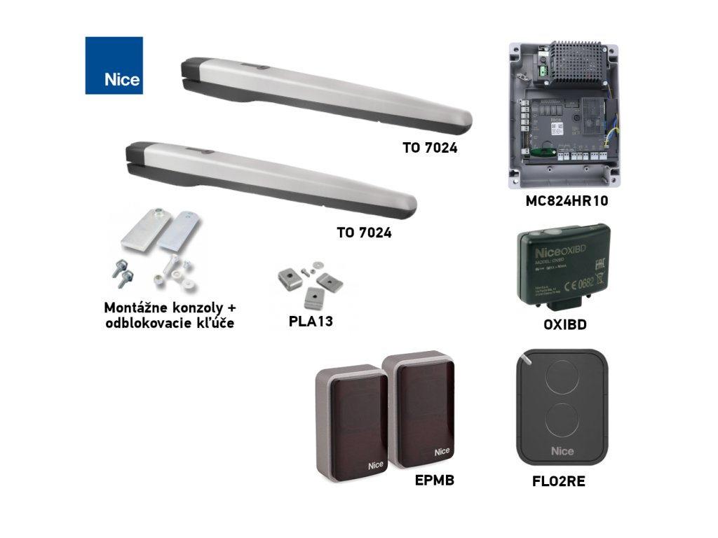 Sada pohonu NICE Toona 7024 pro dvoukřídlou bránu - jedno křídlo 7m/1700kg s fotobuňkami