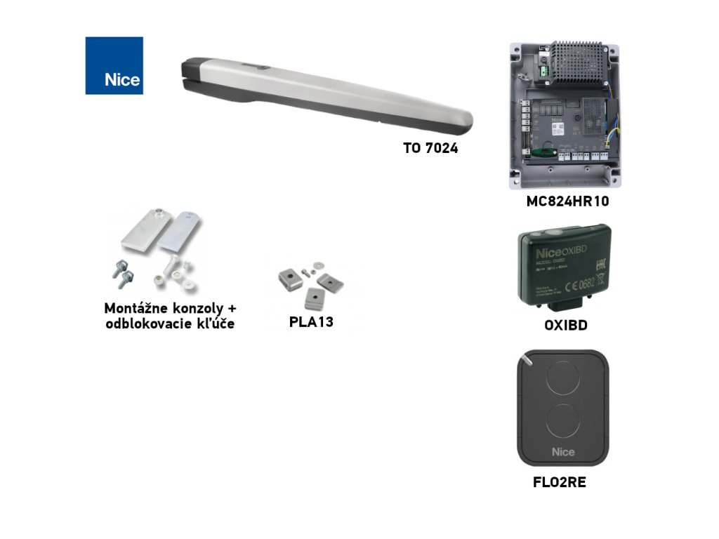 Řídicí centrála | Jediný ovládací panel kompatibilní s pohonem NICE Toona TO7024. Podporuje technologii BlueBUS, 24 V a obsahuje vestavěnou řídicí jednotku MCA1. | - MoonClever(MC824HR10) | Ano, MC824HR10. |