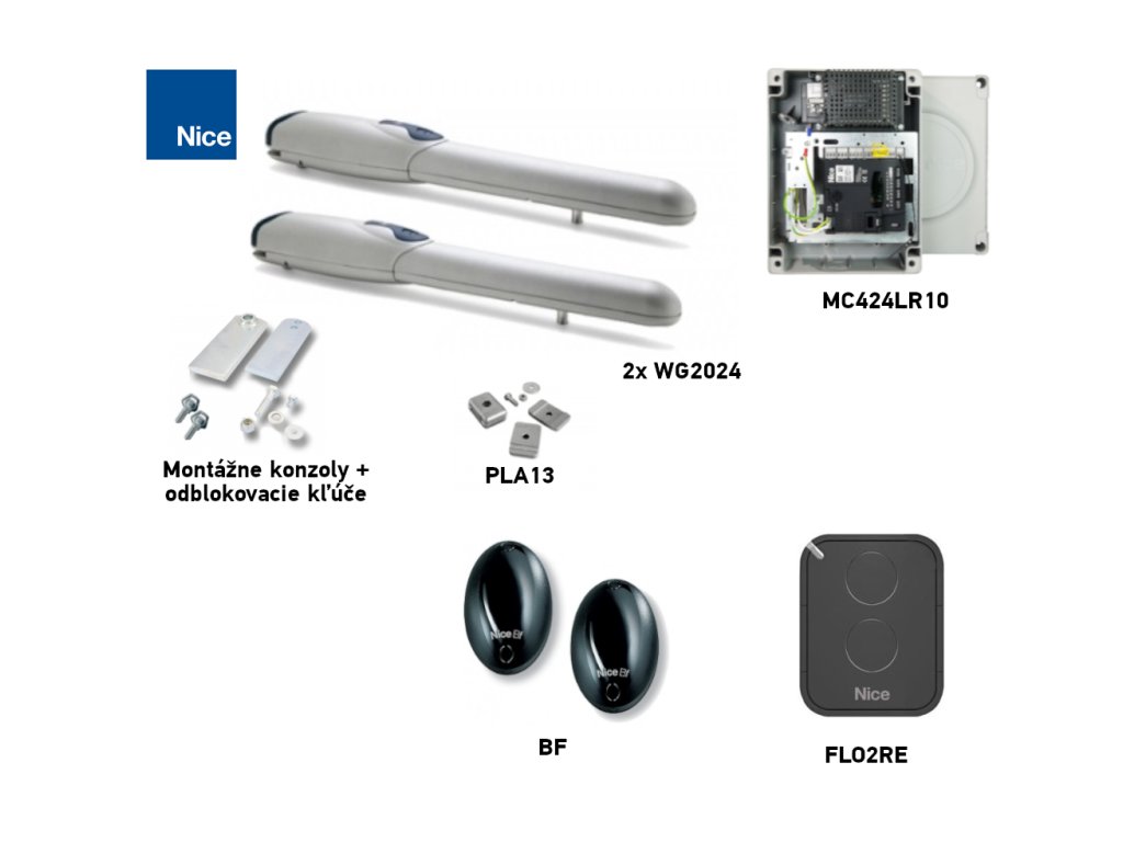 Sada pohonu NICE Wingo 2024 pro dvoukřídlou bránu - jedno křídlo 2m/400kg s fotobuňkami