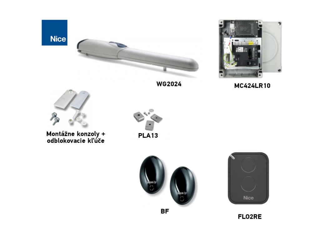 Sada pohonu NICE Wingo 2024 pro jednokřídlou bránu do 2 m/400 kg s fotobuňkami
