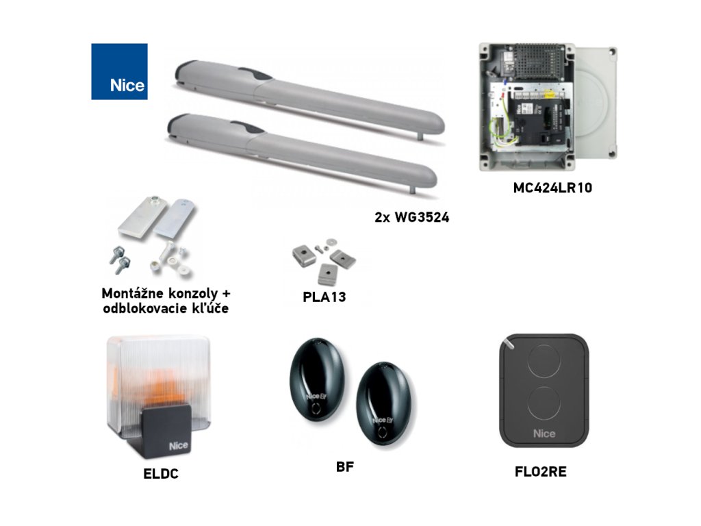 Sada pohonu NICE Wingo 3524 pro dvoukřídlou bránu - jedno křídlo 3,5 m/500 kg s příslušenstvím