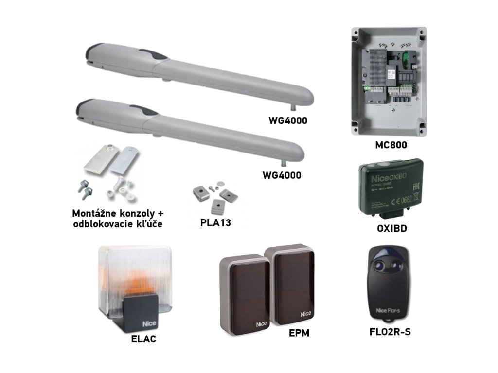 Sada pohonu NICE Wingo 4000 pro dvoukřídlou bránu - jedno křídlo 2m/400kg s příslušenstvím
