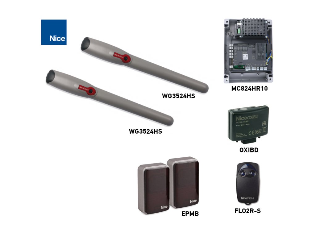Sada pohonu NICE Wingo WG3524HS pro dvoukřídlou bránu - jedno křídlo 3m/200kg, s fotobuňkami