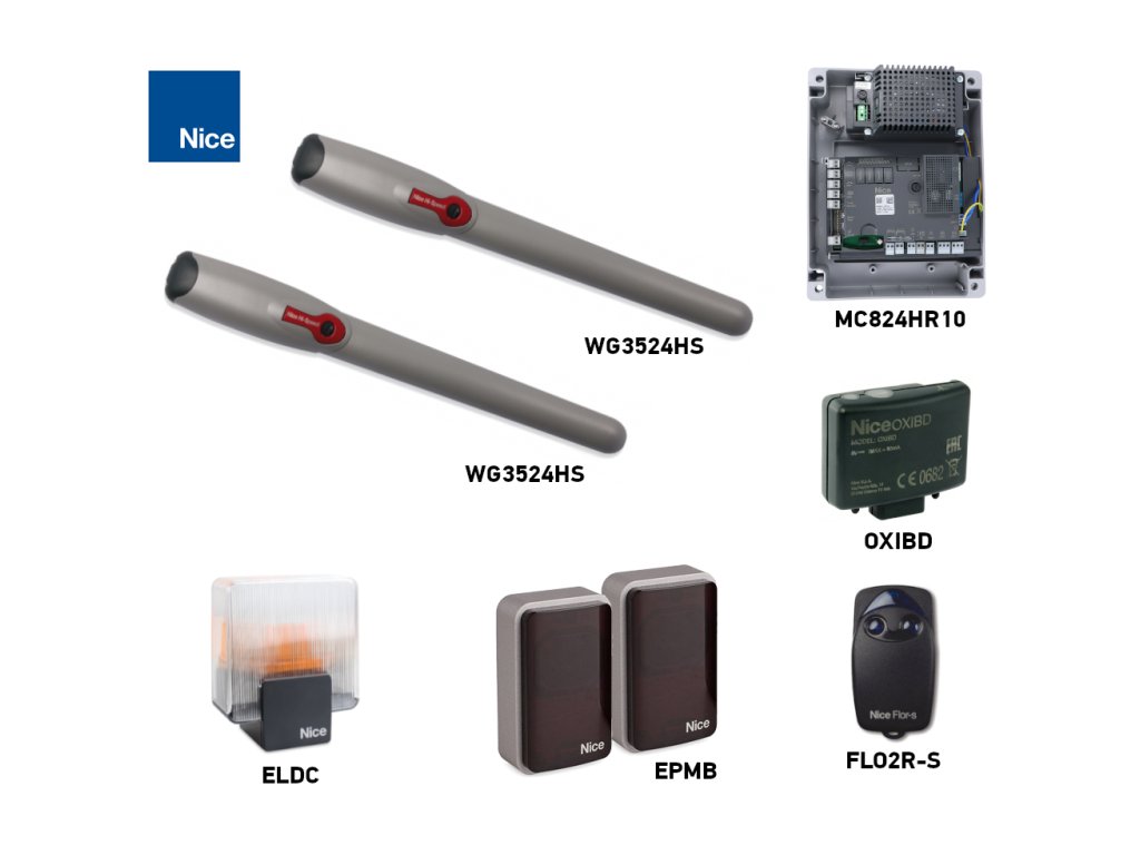 Sada pohonu NICE Wingo WG3524HS pro dvoukřídlou bránu - jedno křídlo 3m/200kg, s příslušenstvím