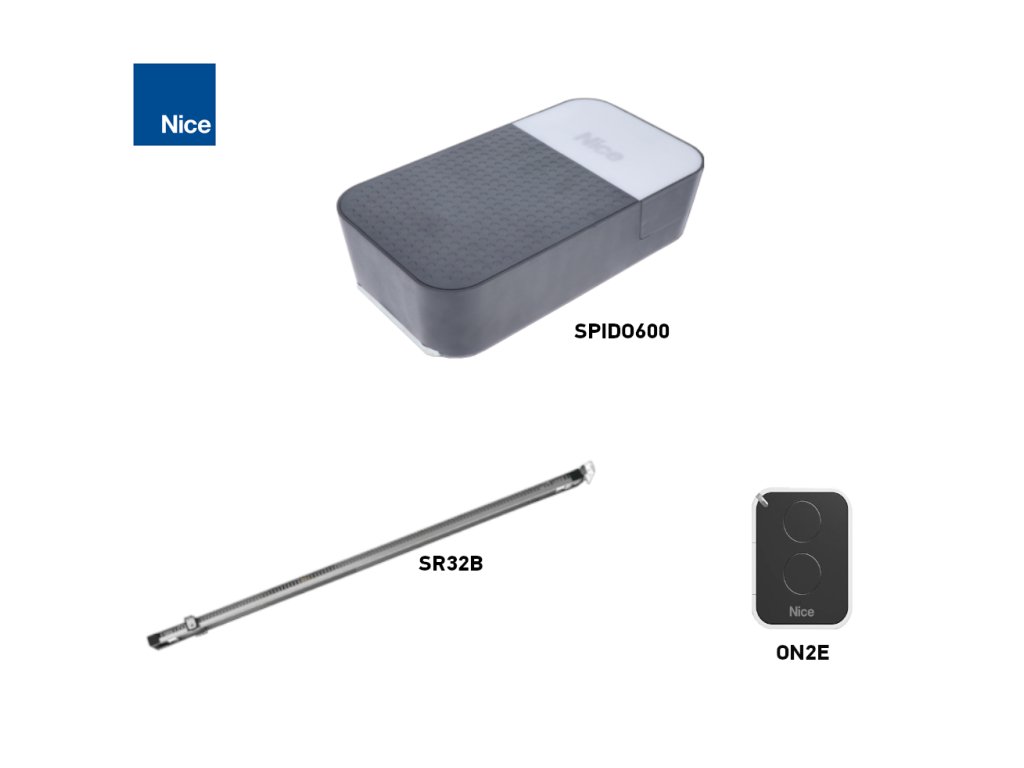 Garážový pohon NICE SPIDO 600 je elektromechanický pohon s motorem 24V, s řídící jednotkou se zabudovaným přijímačem, který je kompatibilní s ovladači série ON, INTI a MYGO, v sestavě s řemenovou dráhou 3,2m (v kuse).