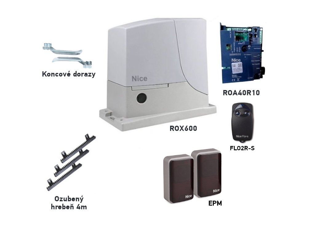 Sada pohonu pro posuvné brány do 600 kg NICE Rox ROX600 (E)