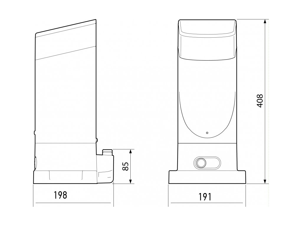 - posuvná brána vede před plotem - pohon a stojan nemusíte umísťovat zvenku, ale umístěte jej zevnitř na samý okraj průjezdu. Díky úzké šířce 19,1 cm můžete zkrátit dráhu jen o kousek a jezdit zevnitř.