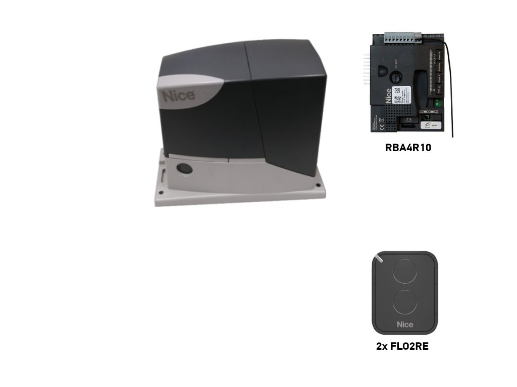Elektromechanický pohon NICE s řídicí jednotkou RBA4R10 s vestavěným přijímačem s nosností až do celkové hmotnosti brány 400 kg.