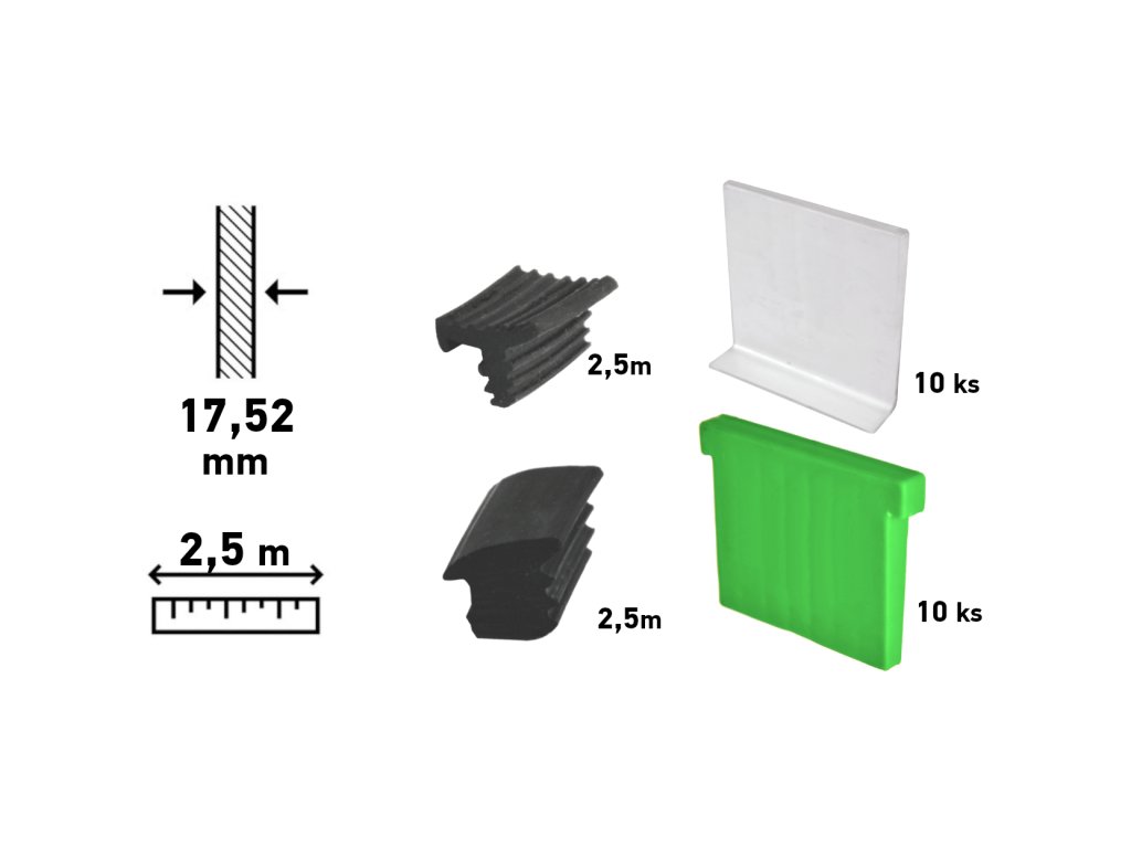 Sada příslušenství pro ukotvení skla o tloušťce 17,52 mm do 2,5 m dlouhého profilu