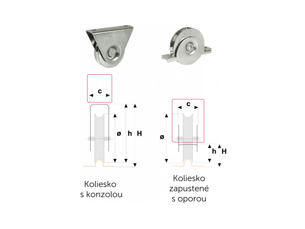 Kolieska koľajovej brány 2 × Kolečko Ø80 mm, inox