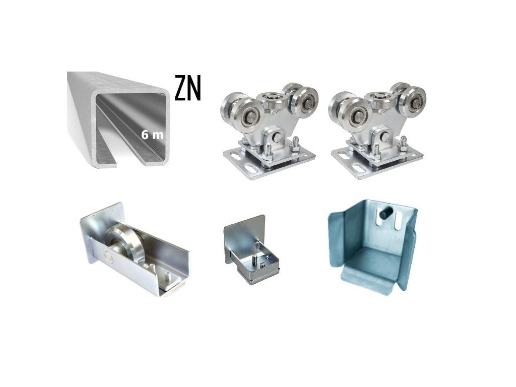 Sada obsahuje nosné vozíky pro samonosné brány s pěti válečky, kde jsou použita ložiska. Vozíky mají možnost regulace a kývání, přičemž regulace slouží k "doladění" odrazu brány od země a kývání slouží k rovnoměrnému namáhání všech ložisek v tahu a tlaku. Vozíky se dodávají včetně montážní desky.