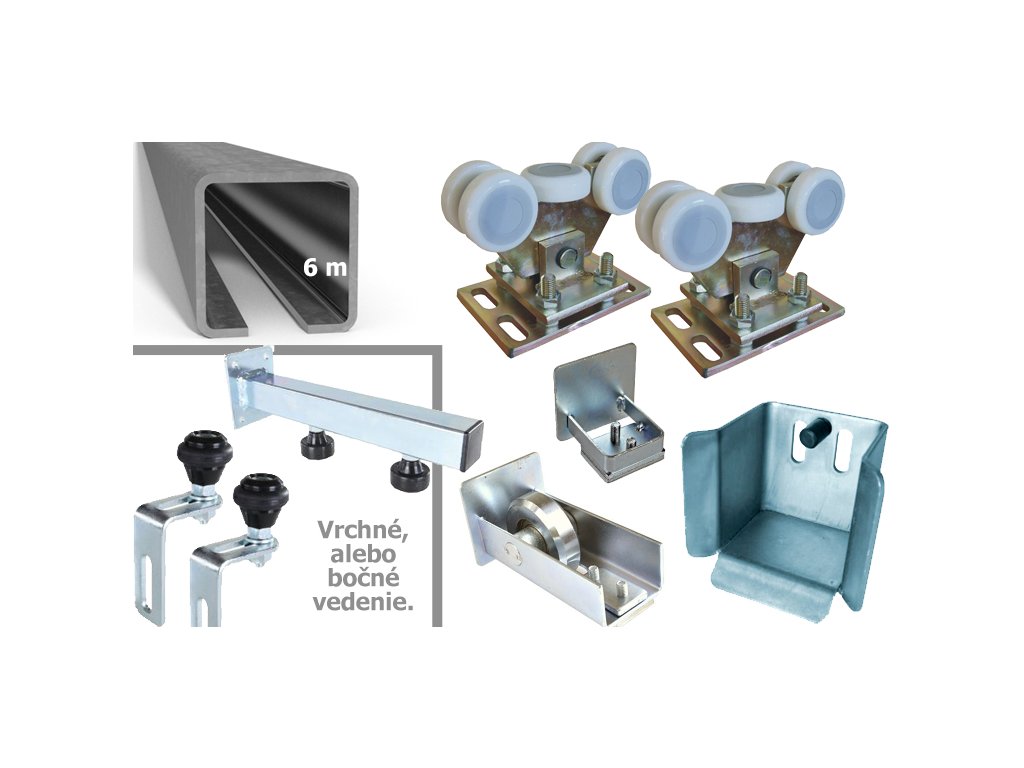 Sada obsahuje nosné vozíky pro samonosné brány s pěti válečky, kde jsou použita ložiska. Vozíky mají možnost regulace a kývání, přičemž regulace slouží k "doladění" odrazu brány od země a kývání slouží k rovnoměrnému namáhání všech ložisek v tahu a tlaku. Vozíky se dodávají včetně montážní desky.