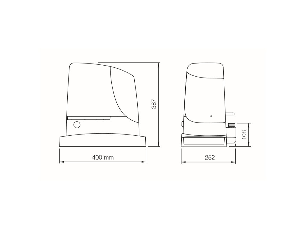 Pohon NICE RUN 400HS je určen pro rychlý pohyb posuvných bran do 400 kg. Rychlost pohybu brány až 42 m/min.