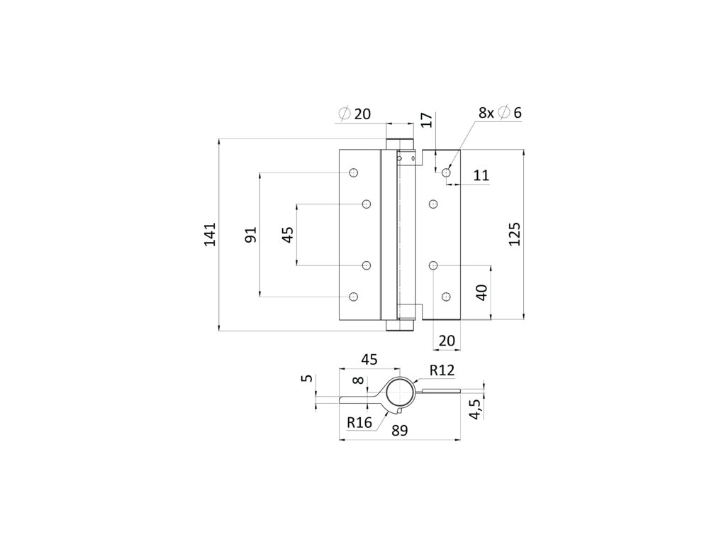 Závěs je vhodný pro použití na dveřích s maximální hmotností 25 kg a rozměry křídla 900x2000 mm.