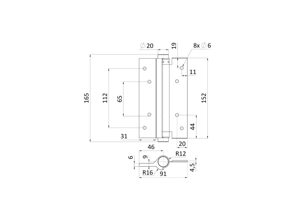 Závěs je vhodný pro použití na dveřích s maximální hmotností 30 kg a rozměry křídla 900x2000 mm.