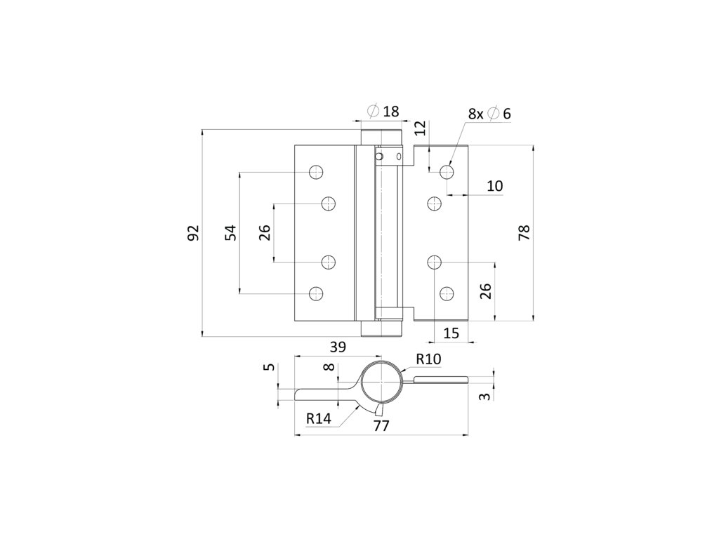 Závěs je vhodný pro použití na dveřích s maximální hmotností 15 kg a rozměry křídla 800x2000 mm.