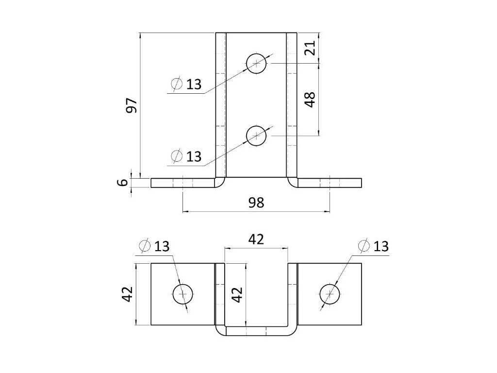 Sedlový úchyt, průběžný, pro profily 41x41mm a 41x21mm