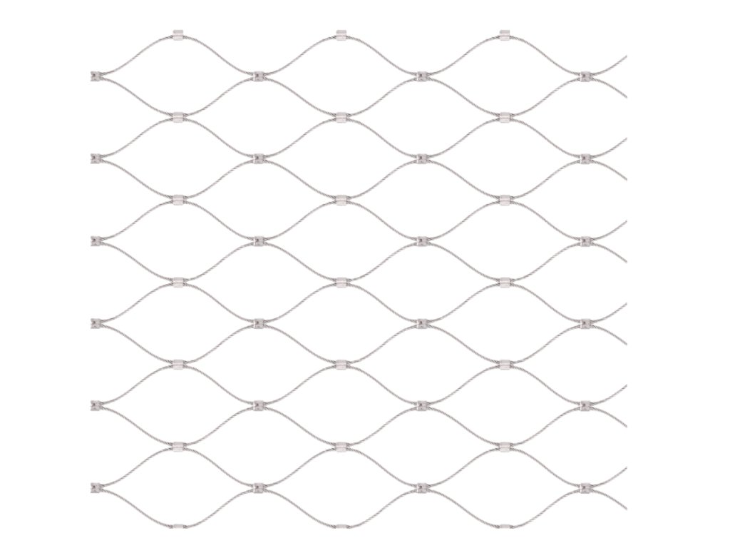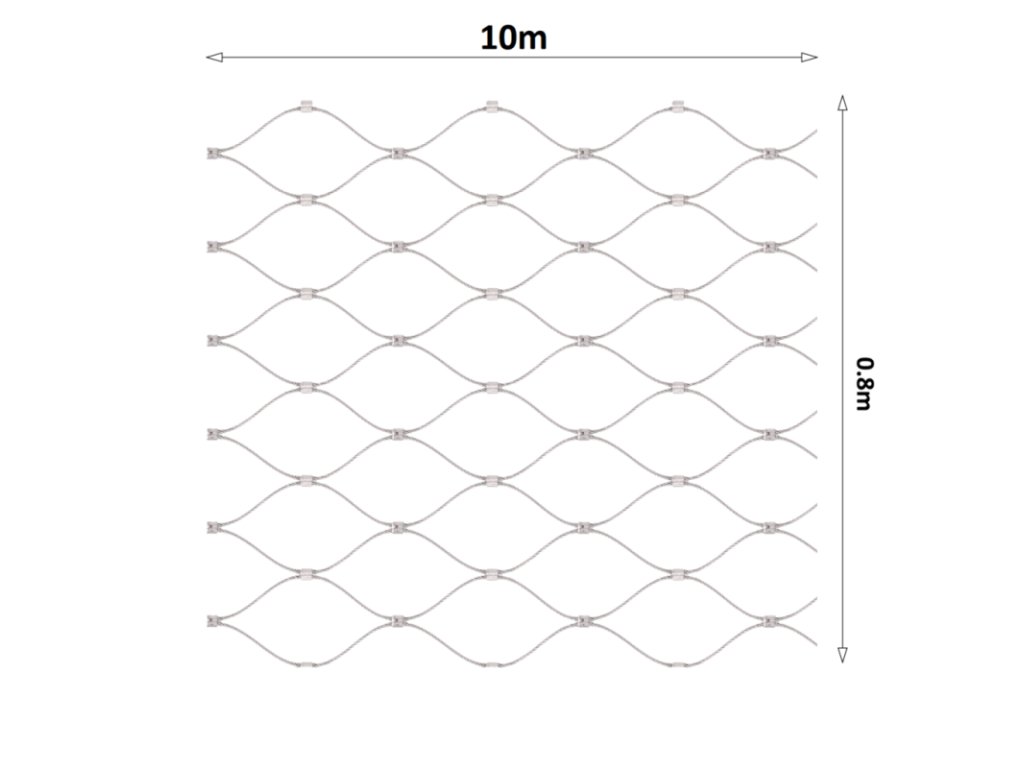 Nerezová výplňová síť, pletená z nerezového drátu o průměru 2 mm, s velikostí ok 60x104 mm, vyrobená z nerezové oceli AISI316.