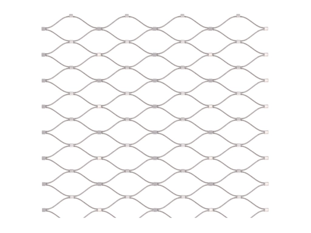 Nerezová výplňová síť, pletená z nerezového drátu o průměru 3 mm, s velikostí ok 60x104 mm, vyrobená z nerezové oceli AISI316.