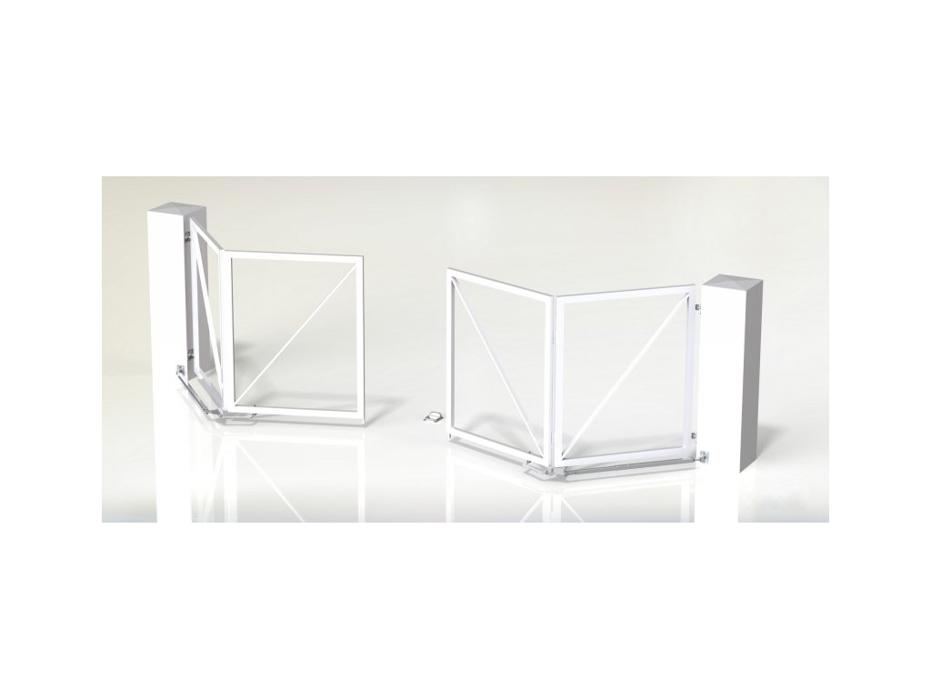 Sestava komponentů pro křídlovou bránu s dvoudílným skládacím křídlem o délce až 2,4 m. Při použití dva sestavy, které můžete harmonikově skládací křídlová brána s šířkou průjezdu až 4,8 mm m. Dvoudílná skládací křídlová brána je užitečná zejména v případě, že auto parkujete přímo za bránou, pokud je těsně za bránou svah nebo pokud existuje jiná překážka, která znemožňuje instalaci klasického jednodílného křídla. Díky tomuto mechanismu můžete ušetřit až polovinu místa, které byste jinak zabrali rezervoval oblouk popsaný pohybem křídla.