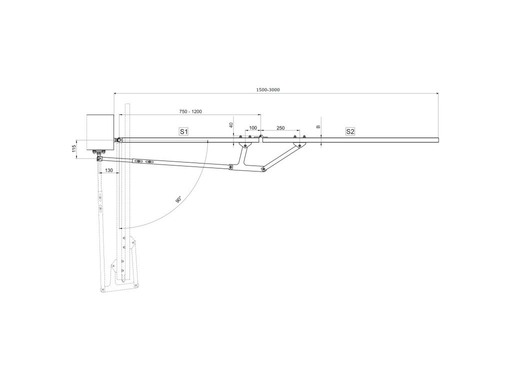 Sestava komponentů pro křídlovou bránu s dvoudílným skládacím křídlem délka až 3 m. Při použití dva sestavy, které můžete harmonikově skládací křídlová brána s šířkou průjezdu až 6 mm m. Dvoudílná skládací křídlová brána je užitečná zejména v případě, že auto parkujete přímo za bránou, pokud je těsně za bránou svah nebo pokud existuje jiná překážka, která znemožňuje instalaci klasického jednodílného křídla. Díky tomuto mechanismu můžete ušetřit až polovinu místa, které byste jinak zabrali rezervoval oblouk popsaný pohybem křídla.