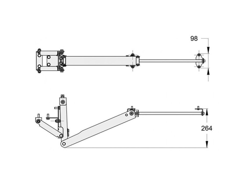 Skládací kloub pro upevnění brány ke sloupku, který je součástí skládacího mechanismu pro křídlové brány do 8 m.