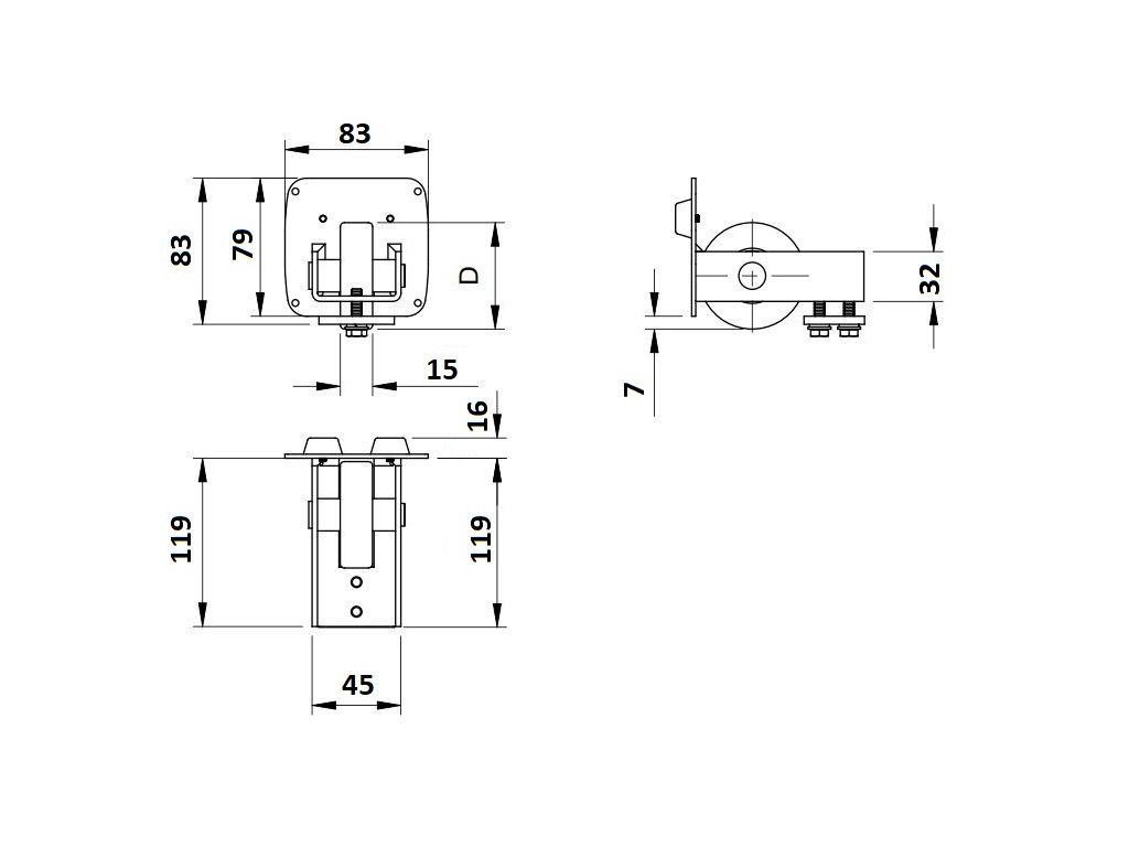 - SN-347M: spodní rampa na hliníkový C-profil 83x79x11mm.