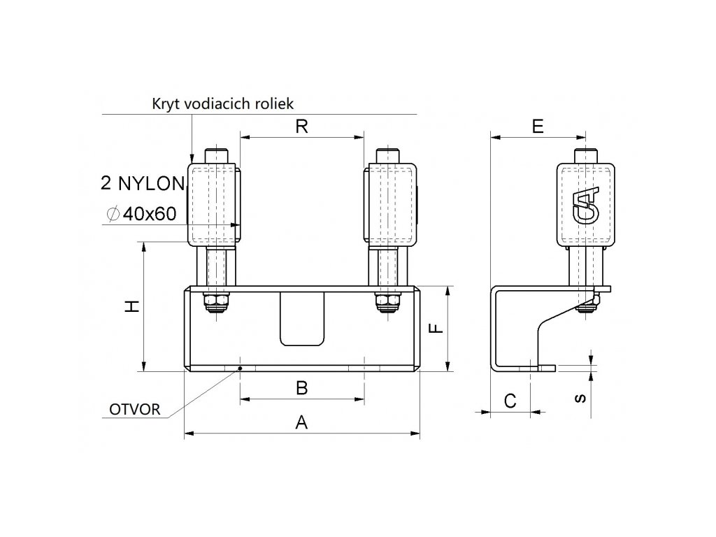 Spodní vedení vrat se dvěma regulovatelnými nylonovými rolemi 40x60mm s krytem 230 (C470-G)