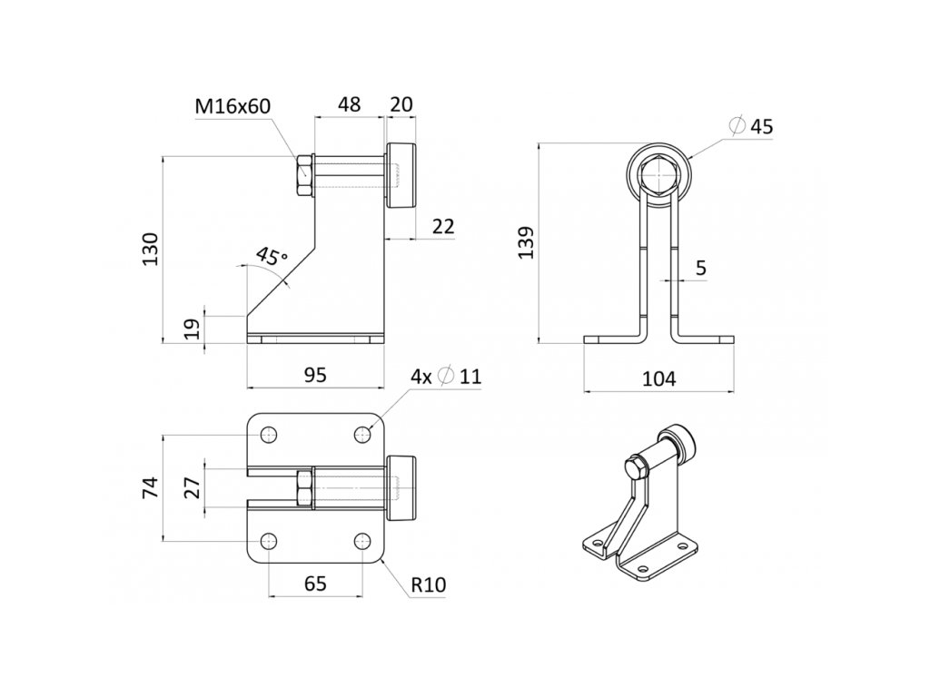 Spodní zarážka pro bránu, vhodná k přišroubování. Zastávka má možnost výškové regulace.