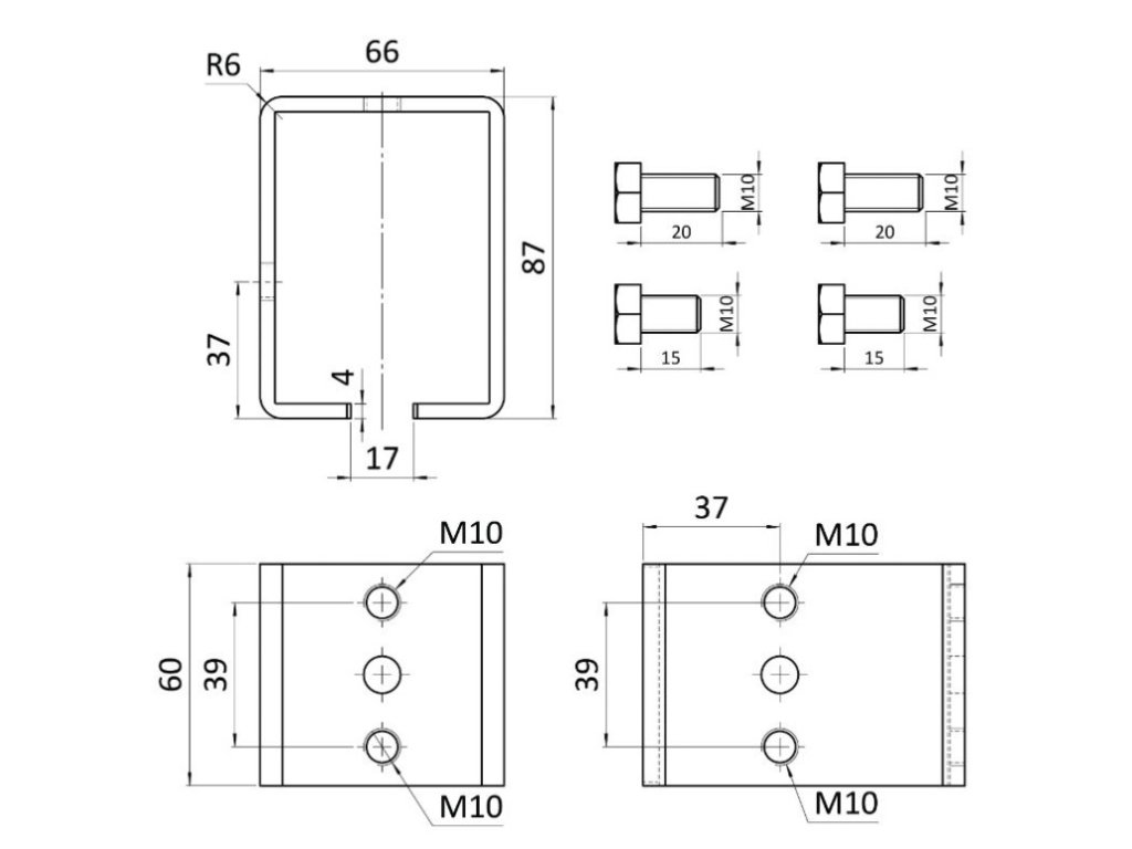Spojka je vhodná pro připojení C-profilu 57x67x3 mm.