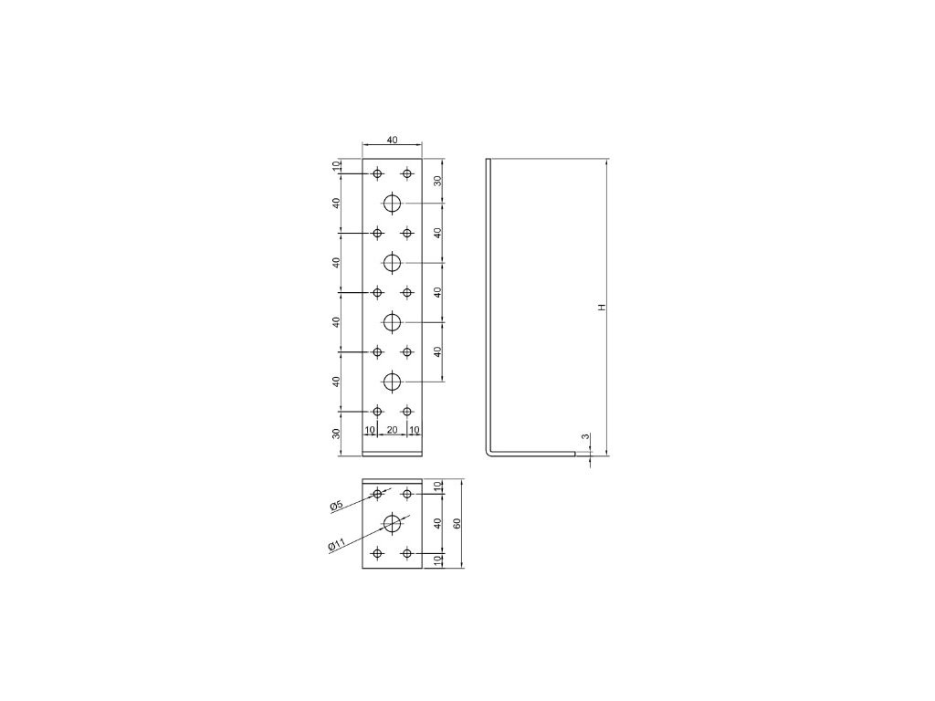 Statický úhelník s otvory bez výztuže nepravidelný 40mm 80 (TK-81U10)