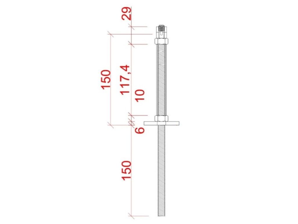 Středová příruba pro fasádní lankovou stěnu, 2x otvor pro ø5mm lanko, odsazení od stěny 150mm
