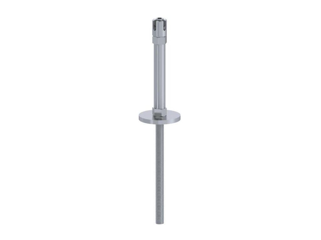 Příruba z nerezové oceli, středová, pro vytvoření fasádní kabelové stěny, vhodné pro ocelová lana o průměru 5 mm. Příruba je vhodná pro vytvoření fasádní kabelové stěny s odskokem 150 mm od stěny.