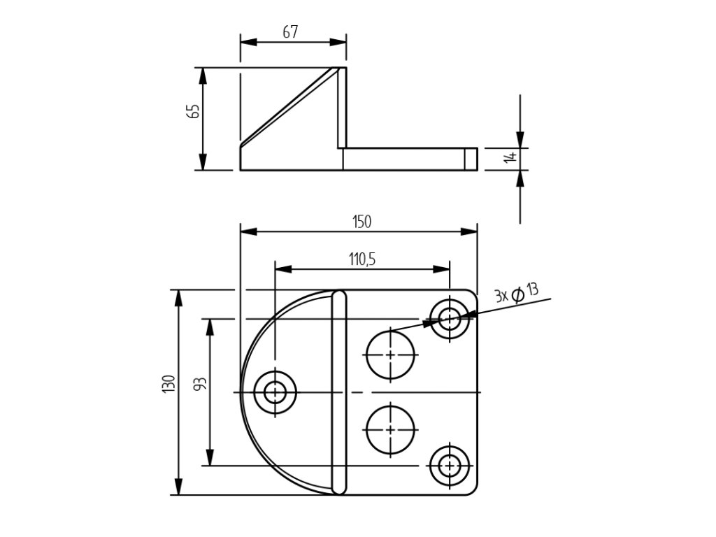Středová pogumovaná zarážka pro křídlové brány a dveře má tři otvory, které slouží k upevnění na místo, kde brána nebo dveře zastavují. Obsahuje také dva otvory o průměru 13 mm vhodné pro zajištění zátkou po uzavření brány.