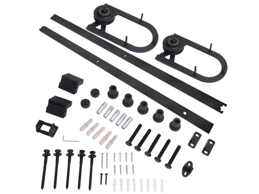 Systém závěsů (typ BARN) pro posuvné dveře vhodný pro interiér i exteriér. Systém je z pozinkované oceli s černou povrchovou úpravou. Závěsný systém má nosnost až 300 kg a je vhodný pro dveře o tloušťce až 50 cm. Posuvné dveře na pantech šetří místo a snadno se instalují.