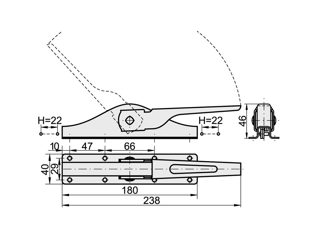 Systém zavírací páky, pro ovládací tyč 12x12 mm