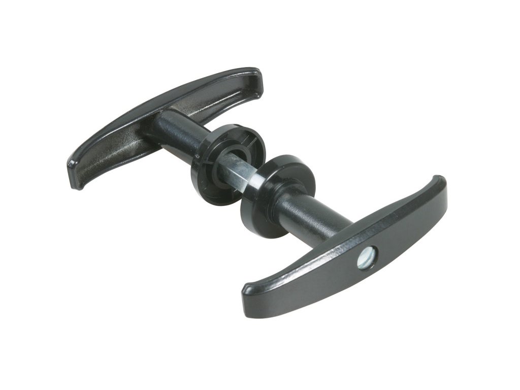 Rukojeť z pozinkované oceli v černé barvě, vhodná pro otevírání garážových vrat.