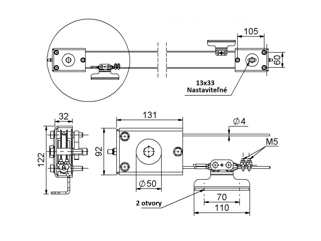 Teleskopický systém pro 2-dílnou posuvnou bránu, bez koleček (PB-TS-2)